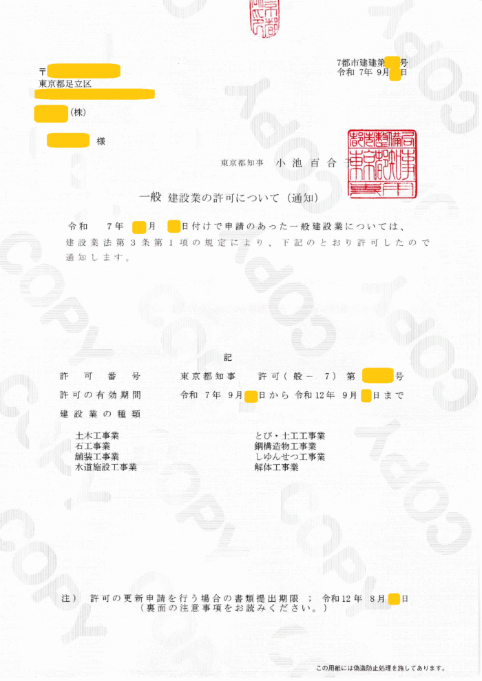 東京都知事 令和7年(土木工事業、とび・土工工事業、他)